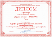 Кафедра права та правоохоронної діяльності Хмельницького інституту МАУП переможець загальноакадемічного рейтингу «Якість освіти – 2024/25».