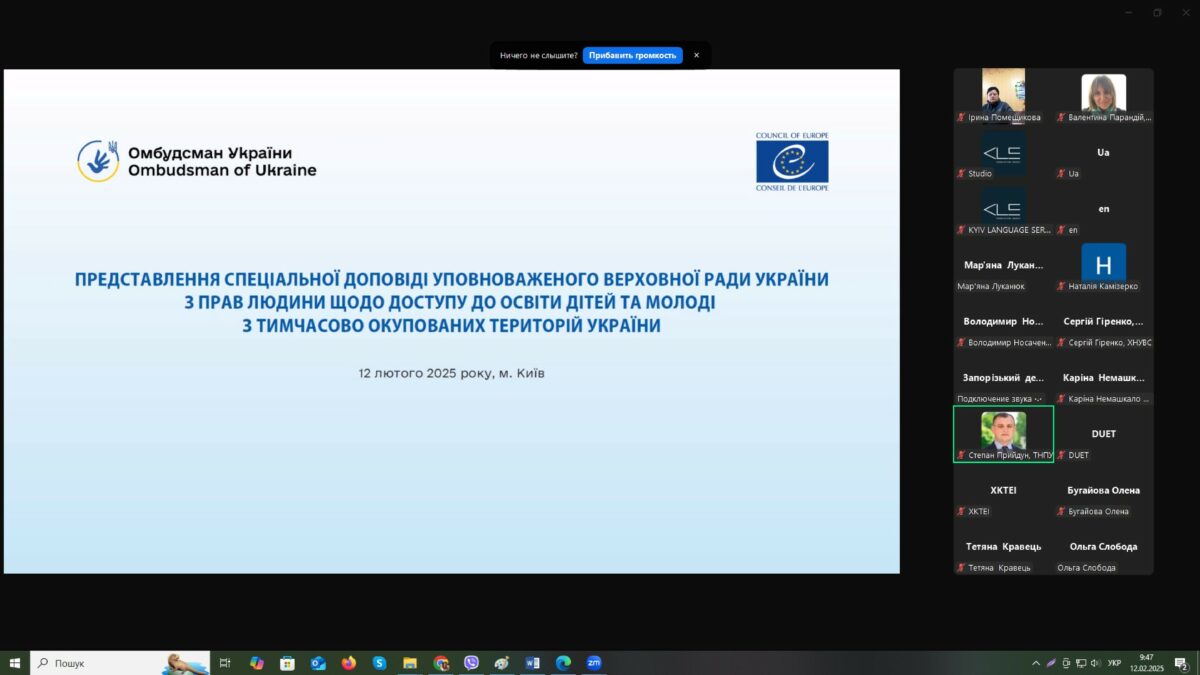 Викладачі та студенти кафедри права та правоохоронної діяльності Хмельницького інституту МАУП взяли участь у Представленні Спеціальної доповіді Уповноваженого Верховної Ради України з прав людини щодо доступу до освіти дітей та молоді з тимчасово окупованих територій України.